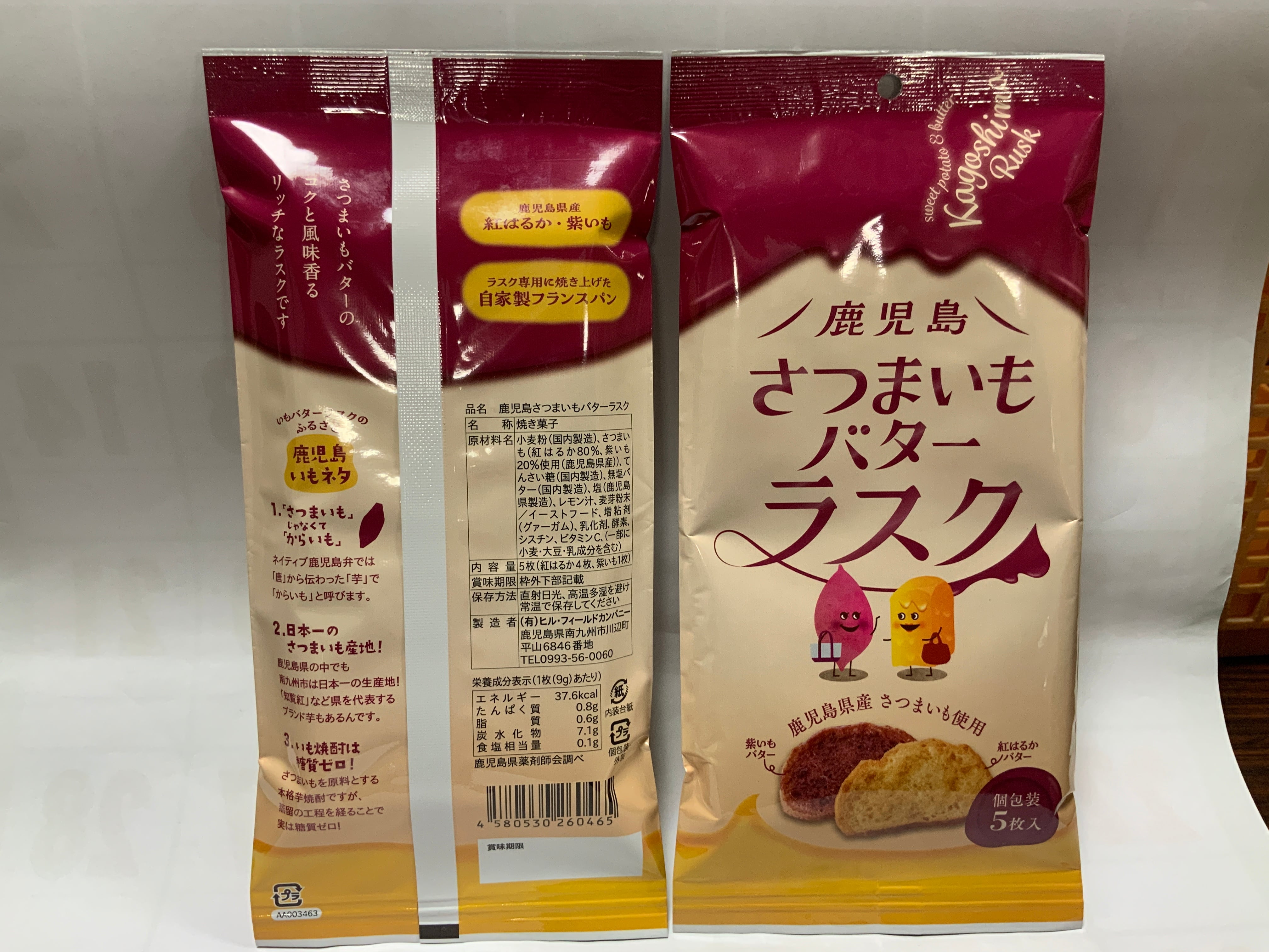 鹿児島さつまいも芋バターラスク(10枚入り)は、ほっくりとしたさつまいもと香り高いバターが贅沢に使用された人気のお菓子です。焼きたてのサクサク感と濃厚な味わいが特徴で、一度食べるとやみつきになること間違いなしです。 鹿児島の地元産さつまいもを使用し、熟練の職人が一枚一枚丁寧に焼き上げています。そのため、風味豊かなさつまいもの香りとバターの濃厚さを存分に楽しむことができます。 この芋バターラスクと共に、ひとときの贅沢をお楽しみください。是非、ご自宅やお土産にお買い求めください。 ※保存方法については要確認。開封後はお早めにお召し上がりください。